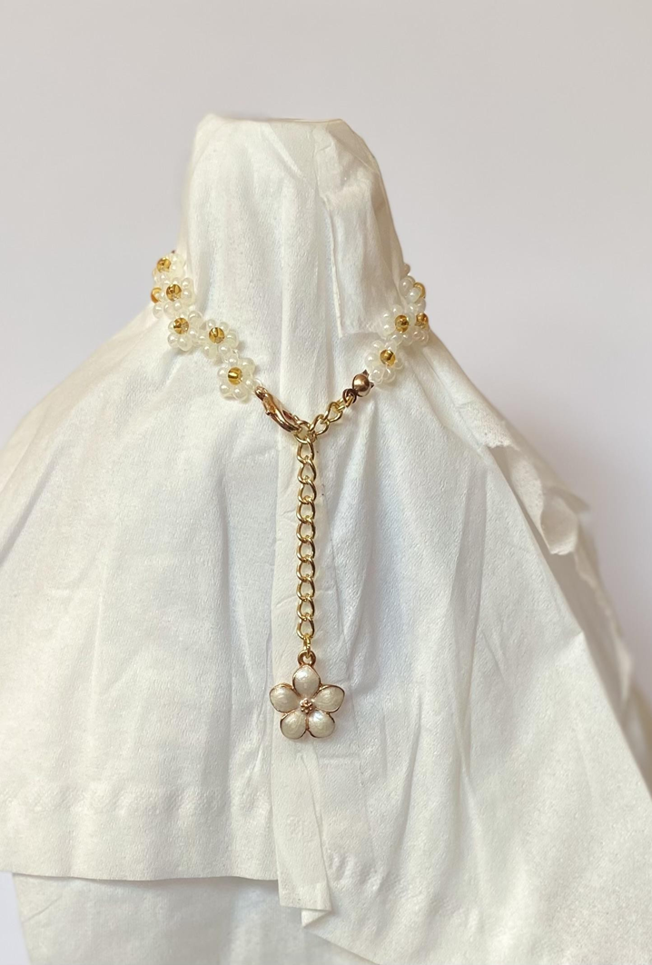 - Colors: white/gold flower seed bead bracelet.